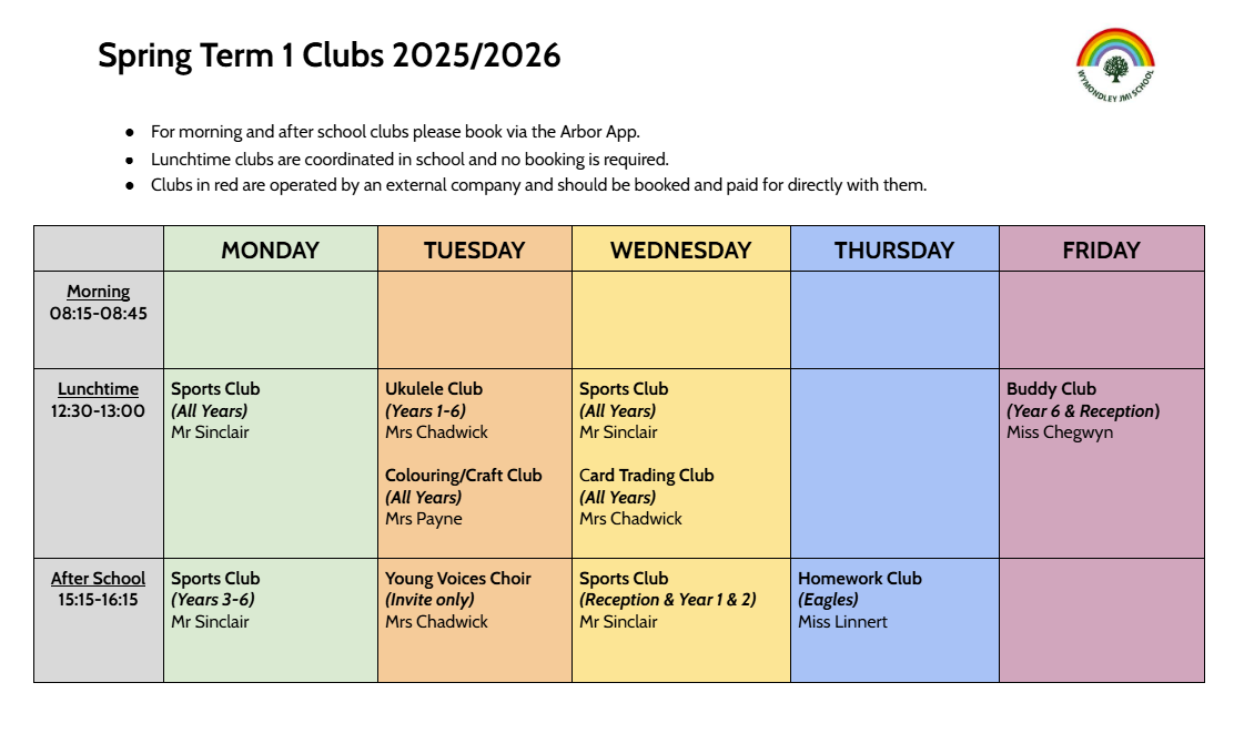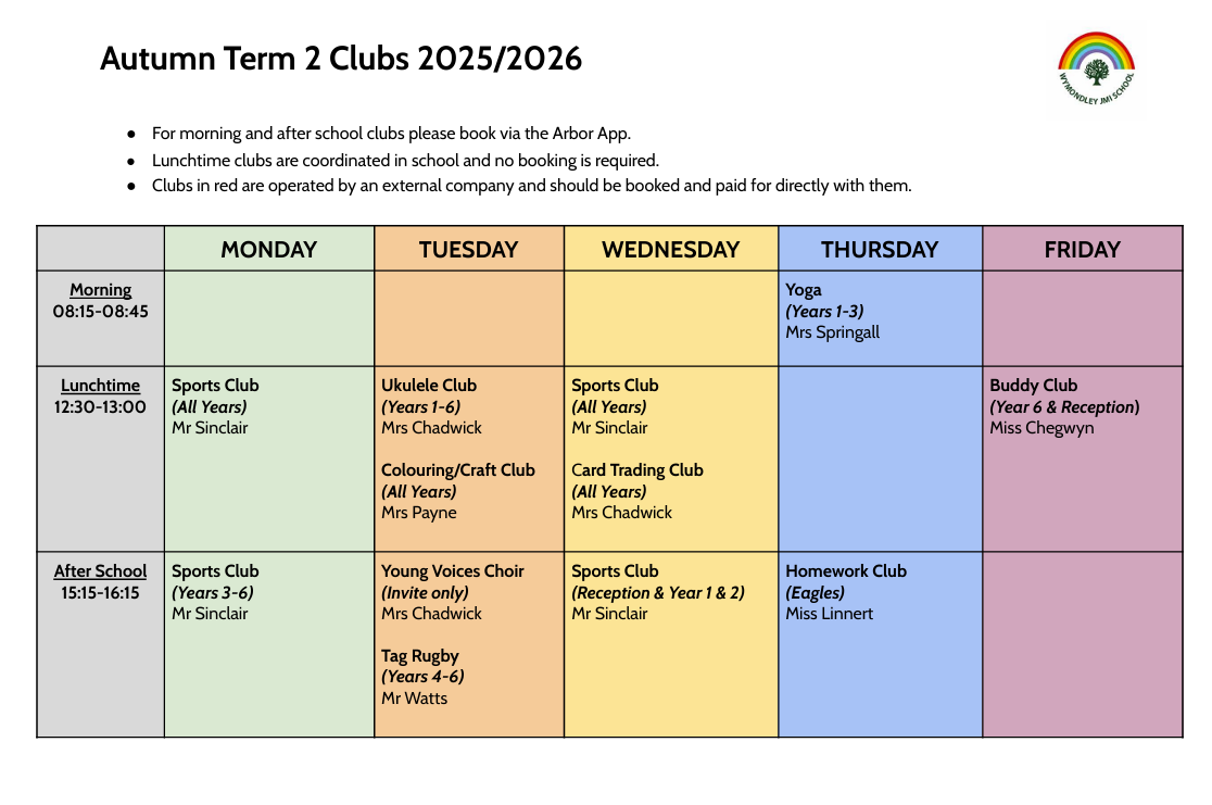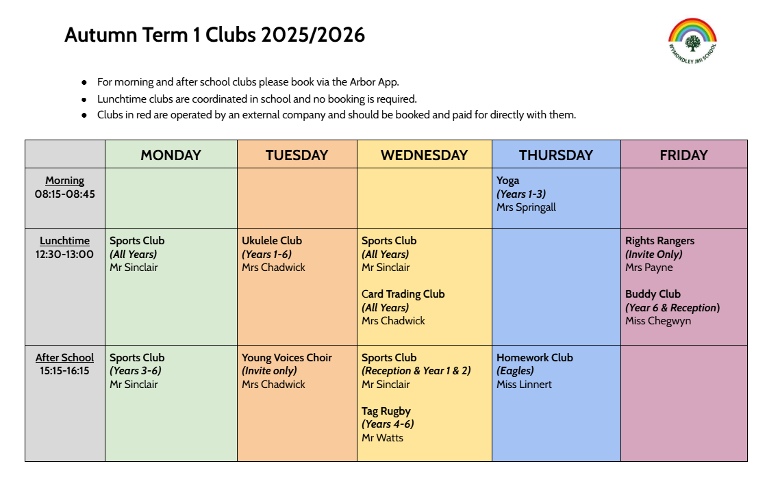 For morning and after-school clubs, please book via the Arbor app.