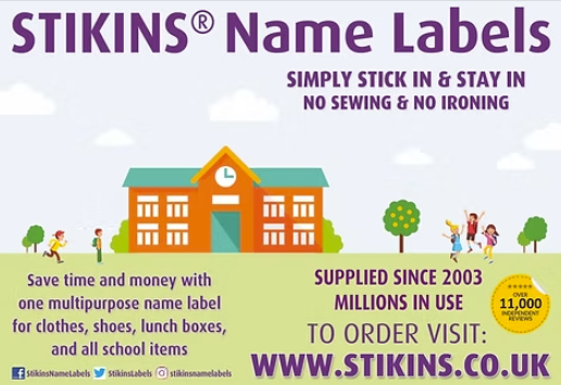 Stikins - we can earn 30% on each order from Stikins - prices start from as little as £7.80 for 30 labels (including postage). Stikins can be used on most school items including water bottles, lunch boxes, shoes, clothing labels and stationery. To order your labels click here and don't forget to enter the school code 26042